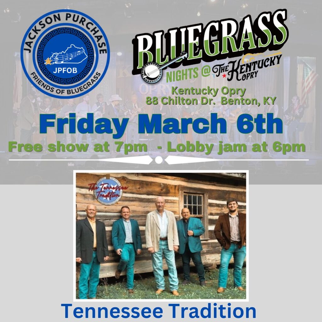 March 6 Every 1st Friday of the Month This is a FREE SHOW featuring local & Regional Bluegrass groups. Donations are taken in a “Pass the Hat” style. Show starts at 7:00 – Pickin and Jammin in the lobby starts at 6:00. JPFOB – Jackson Purchase Friends of Bluegrass are dedicated to preserving and promoting Bluegrass Music in…